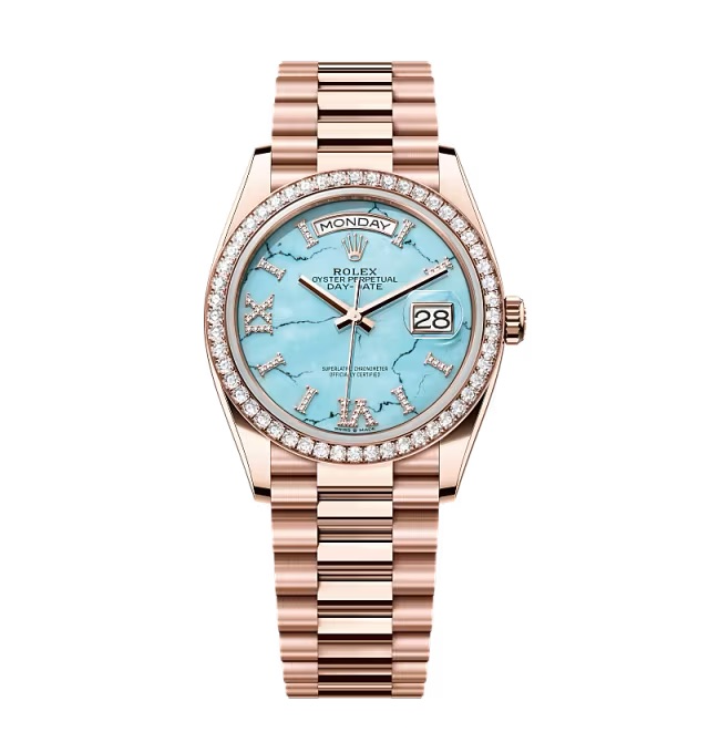 Superclone Rolex Day-Date Turquoise Diamond Dial 128345rbr-0064 36 mm